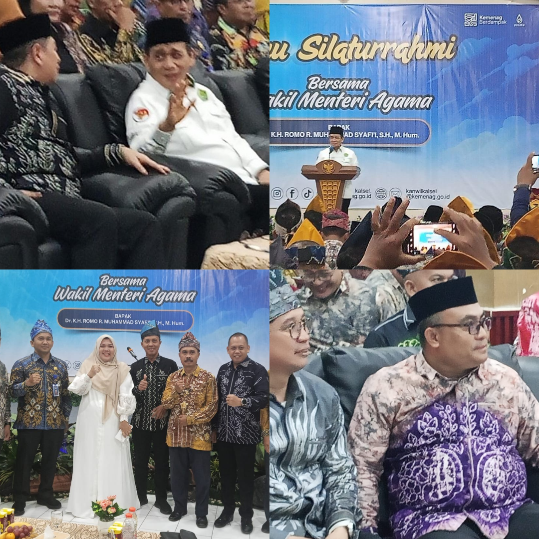 Temu Silaturrahmi Bersama Wakil Menteri Agama Bapak Dr. K.H. Romo R. Muhammad Syafi`l, S.H., M.Hum dihadiri Kepala Bidang pada Kanwil Kemenag Prov. Kalsel, Kepala Kantor Kemenag Kabupaten/Kota, Kepala UPT. Asrama Haji Embarkasi Banjarmasin dan Kasi Penmad Kantor Kemenag Kabupaten/Kota, serta Kepala MAN, MTsN, dan MIN Se – Kalimantan Selatan.